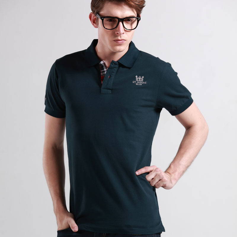 翻领短袖t恤衫,衬衫格子衣领定制,几十个颜色可选,刺绣企业logo